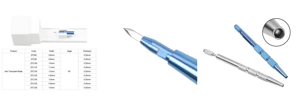 أداة استخراج بصيلات الشعر الطويلة بتقنية FUE Punch المصنوعة من الفولاذ المقاوم للصدأ 316 بقياس 0.7-1.2 مم