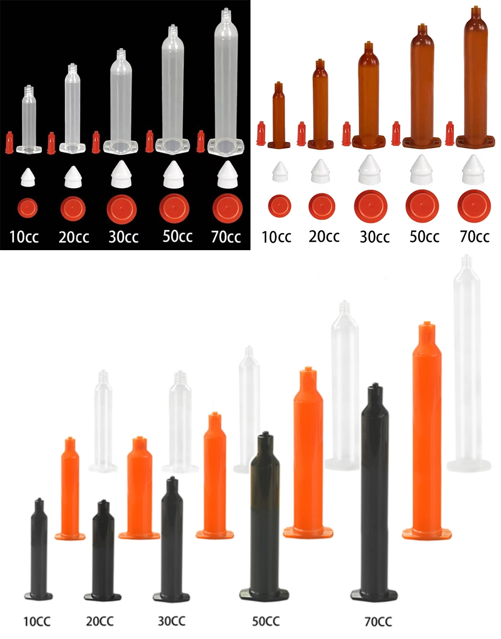 المحقنة الشفافة مناسبة لجميع أنواع غراء التغليف الإلكتروني، والغراء الموصل، ومواد الصهر، والغراء الأحمر لرقعة SMT، وزيوت التشحيم، والطلاء، وغيرها. اللون الأسود مناسب لغراء الأشعة فوق البنفسجية، وغراء المعالجة بالضوء، والحالات التي تتطلب تظليلًا أسود. اللون الكهرماني مناسب للاستخدام العام في أماكن العمل التي تتطلب حماية من الأشعة فوق البنفسجية، ولا يُنصح بتخزين غراء الأشعة فوق البنفسجية لفترة طويلة. المادة: بولي بروبيلين.